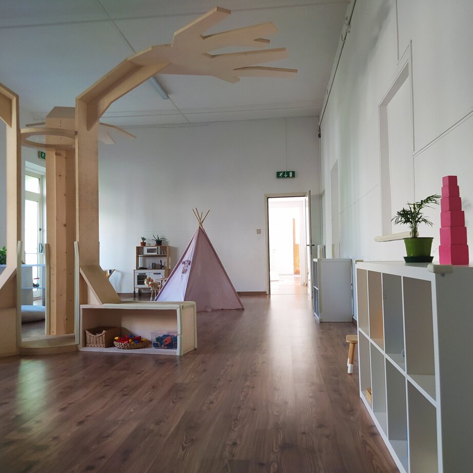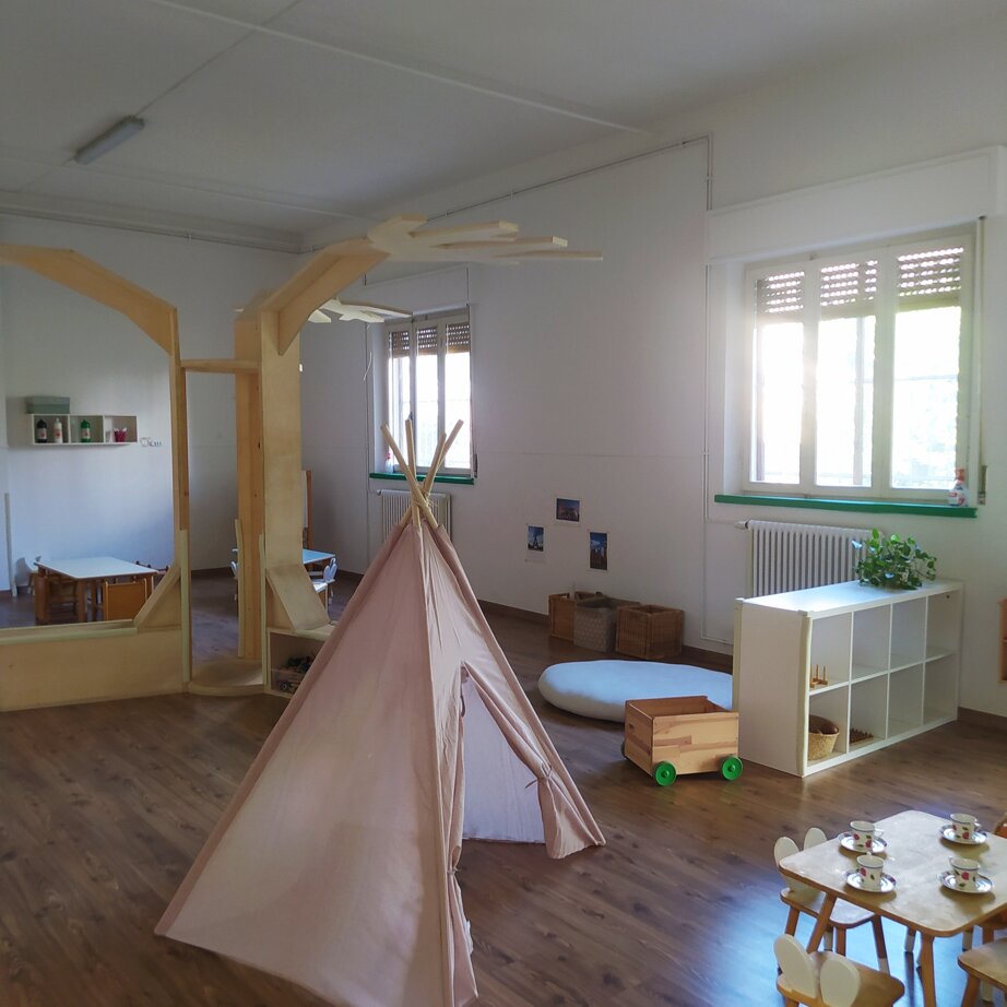 E' uno spazio pensato per il contenimento affettivo, caratterizzato da un angolo morbido e protetto, con piccoli spazi raccolti in quanto più rassicuranti. L'ambiente favorisce e stimola il movimento e l'esplorazione autonoma.